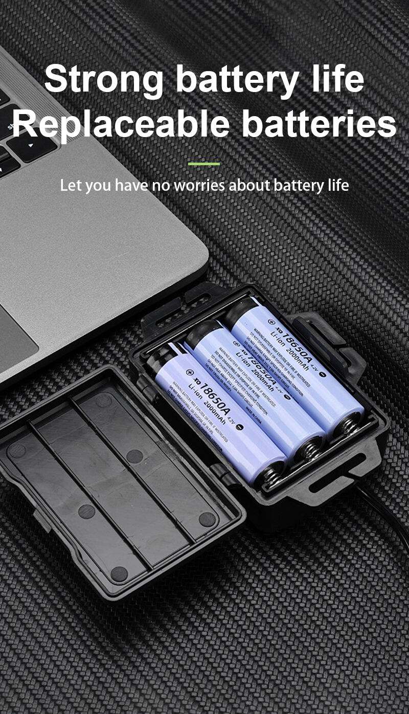 La carcasa está fabricada en aleación de aluminio combinada con plástico duradero, ofreciendo un buen equilibrio entre resistencia y comodidad ligera. Esta linterna frontal es adecuada para pesca nocturna, acampar, trabajo al aire libre, uso de emergencia y otras aplicaciones que requieran iluminación confiable y flexible.