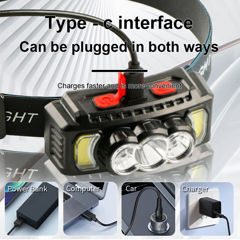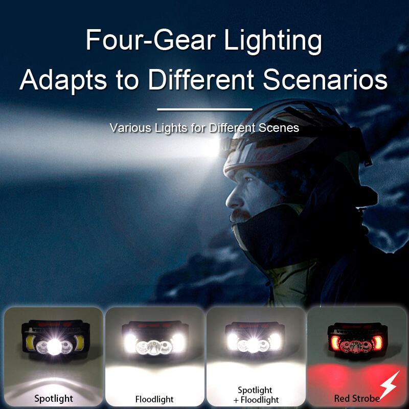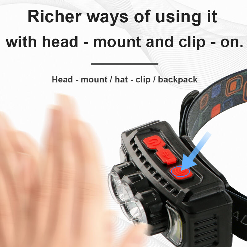 Esta linterna frontal recargable cuenta con un diseño de múltiples fuentes de luz que combina LEDs XPE y doble COB para ofrecer opciones de iluminación flexibles en diversas aplicaciones al aire libre y de trabajo. Los usuarios pueden alternar entre la luz XPE, la luz COB o ambas luces juntas para satisfacer diferentes necesidades de iluminación.