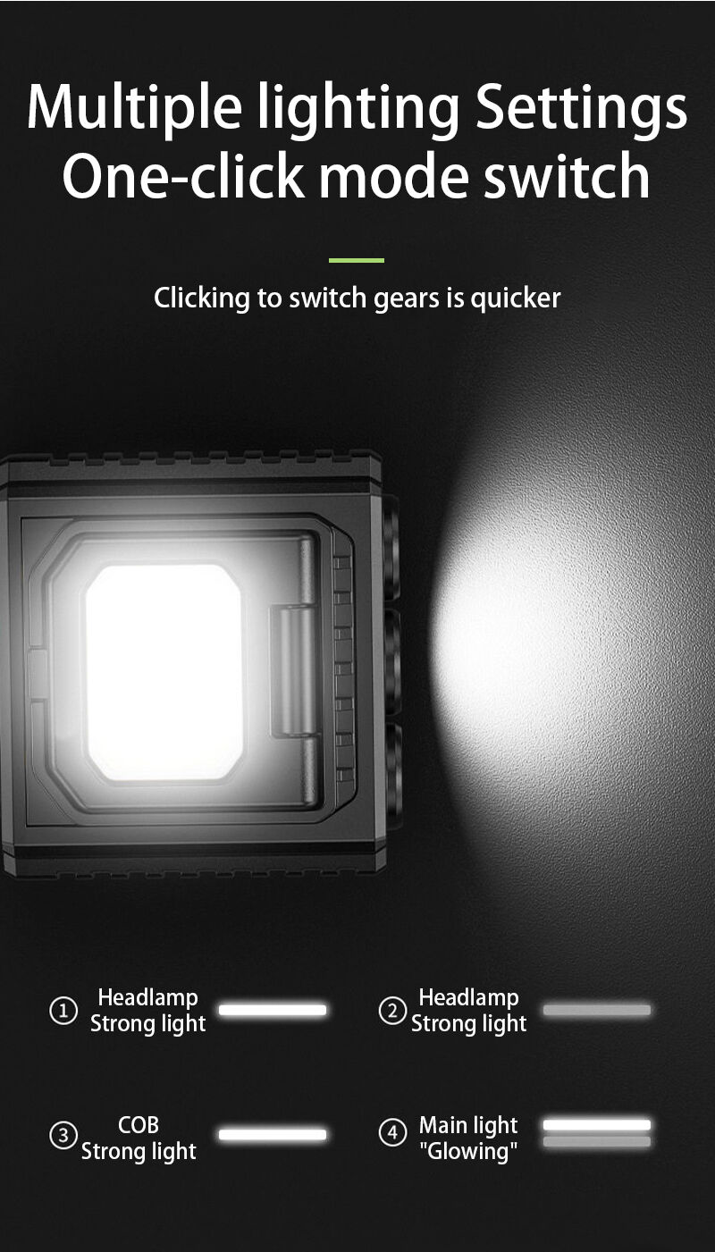 Akkuvarattava 90 asteen kulmaan säädettävä päävalo | XPE + lumen + COB-valomoodit ulkotyöhön, leiriytymiseen ja huoltoon