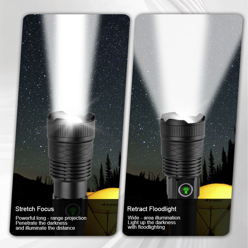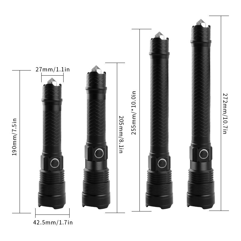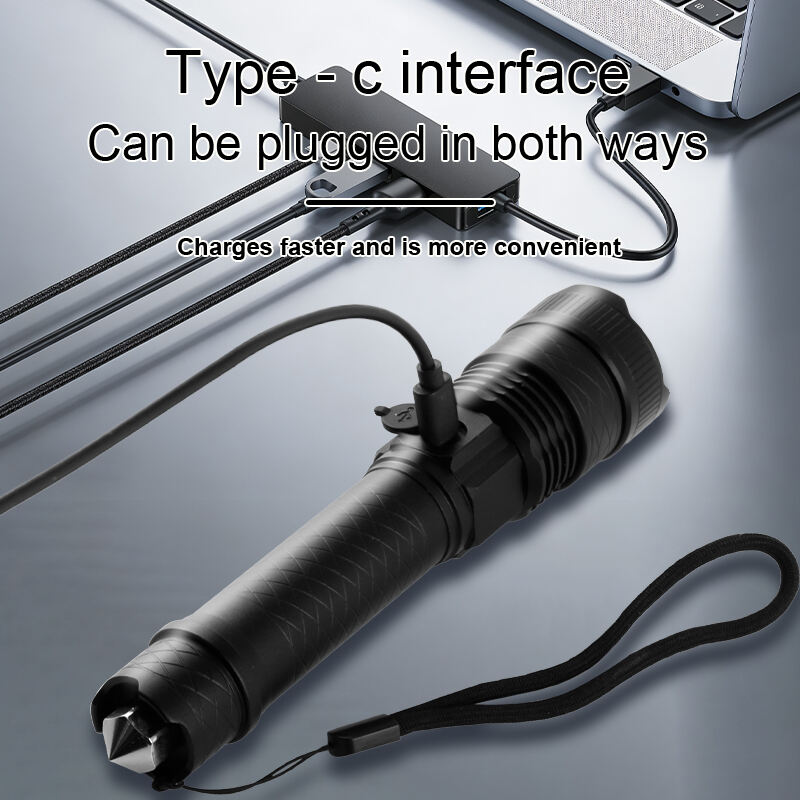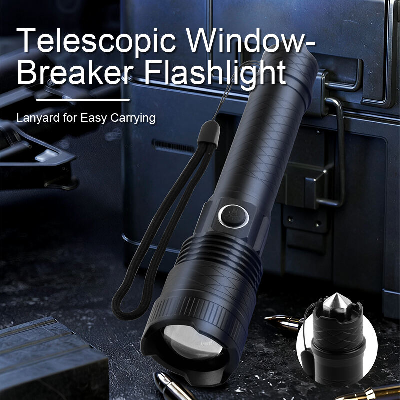 Ladattavat suuret lumenit sisältävät zoomattavat taskulamput vasaralla ulko- ja hätäkäyttöön
