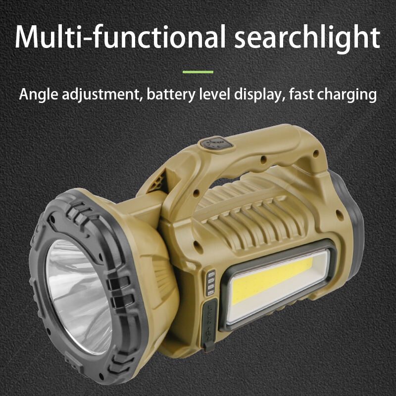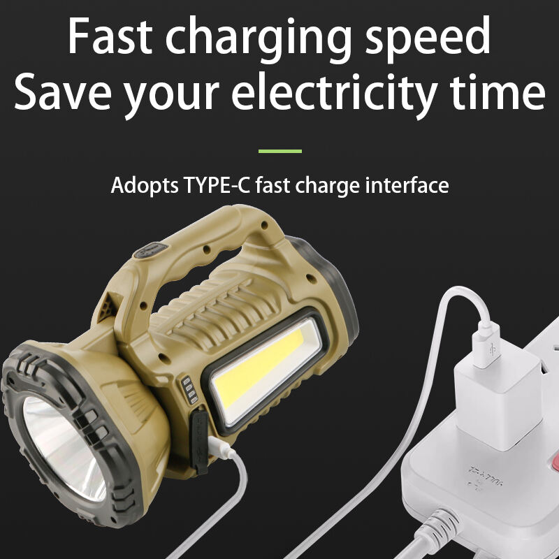 Aurinkopaneeleilla varustettu käsikäyttöinen leirintävalo, valkoinen valo, pitkän kantaman kirkas valokeila, ulkoilu, korkea intensiteetti, palovaroitusvalo, etsintävalo, ladattava Type-C:llä