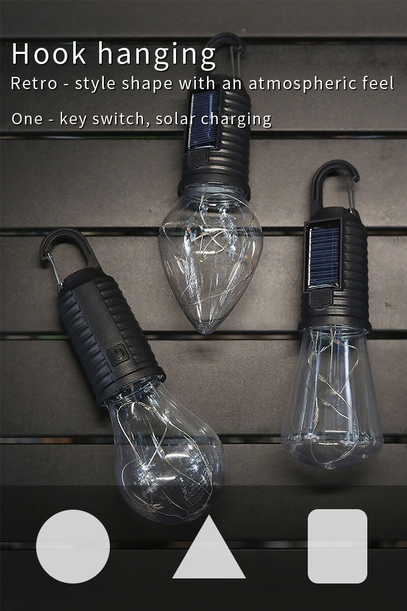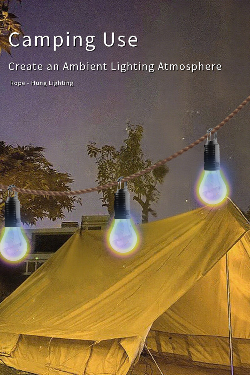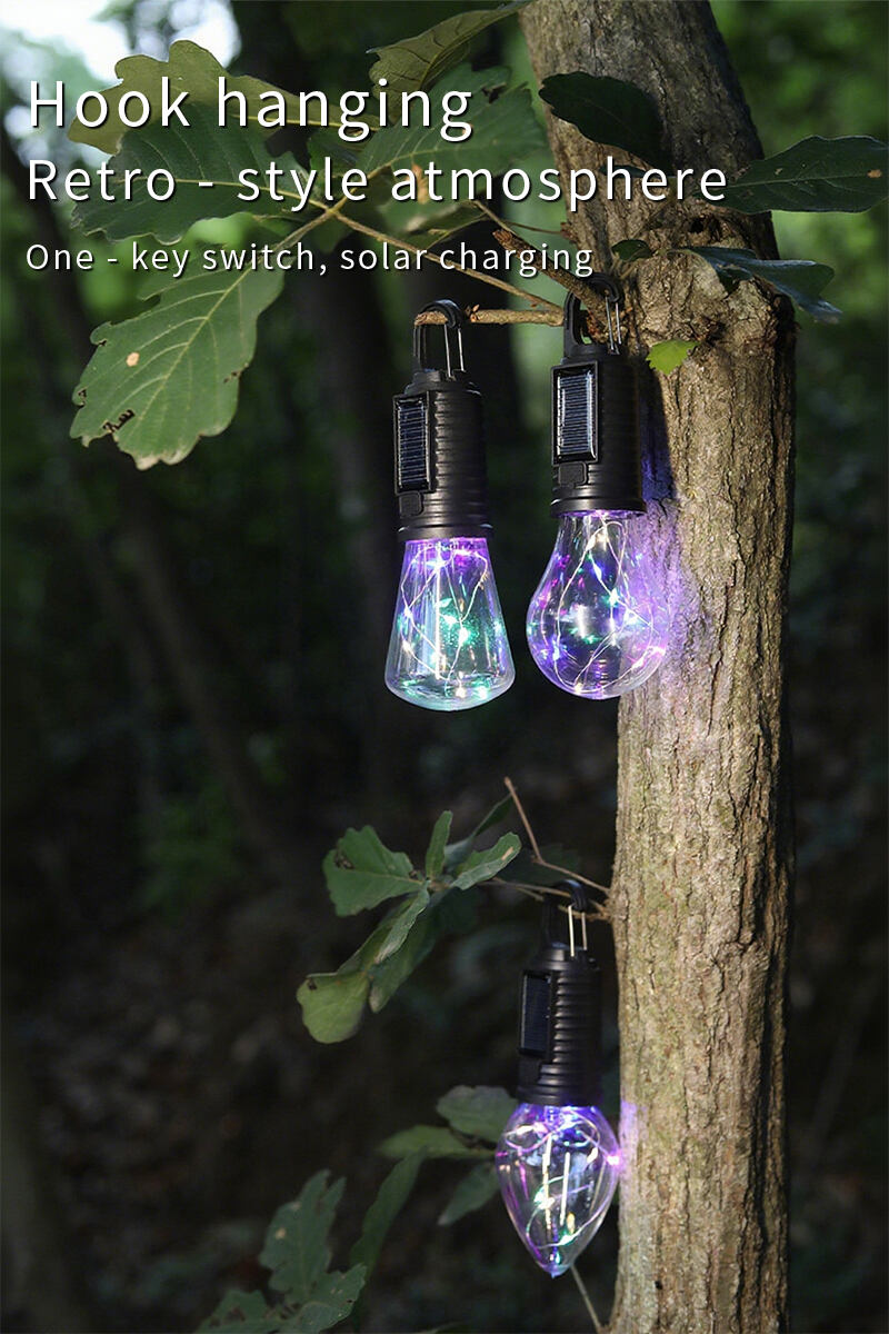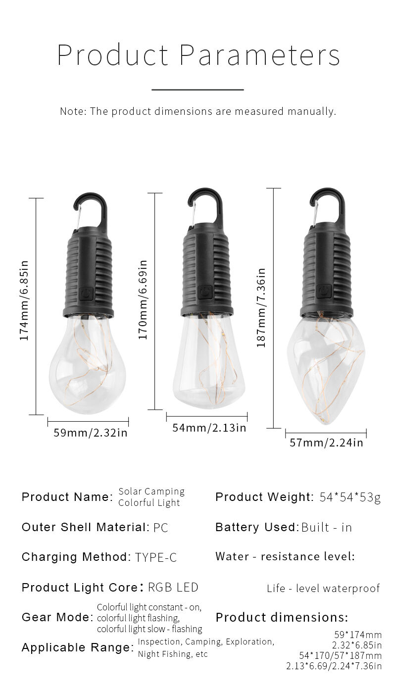 Kannettava ripustettava RGB-leirintälamppu koukulla | Aurinko- ja USB-tyyppi C -laturi | Dekoratiiviseen, hätä- ja ulkokäyttöön