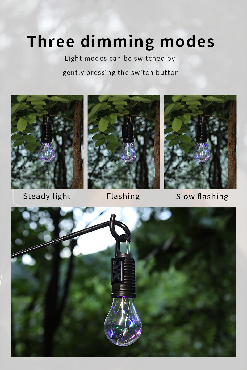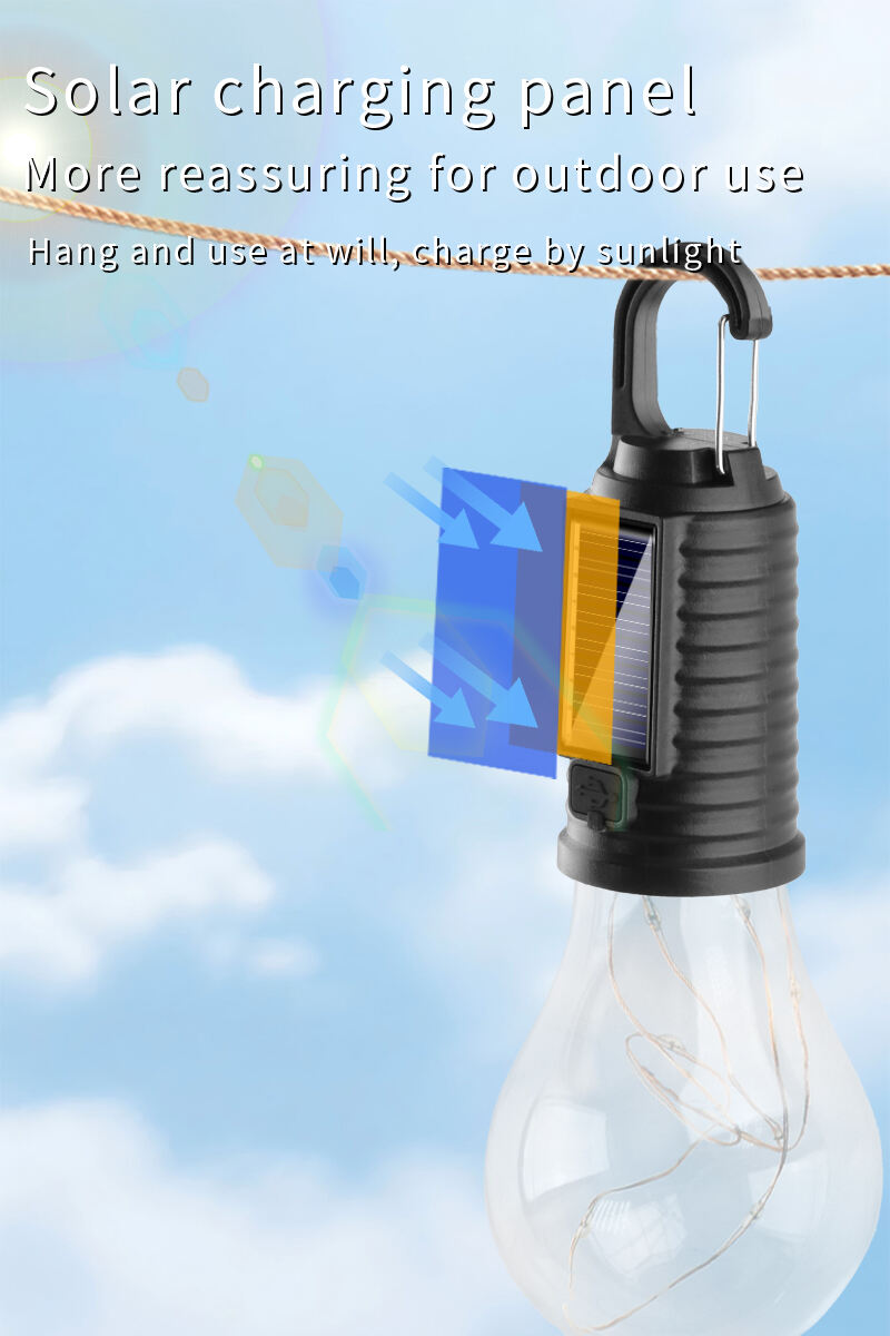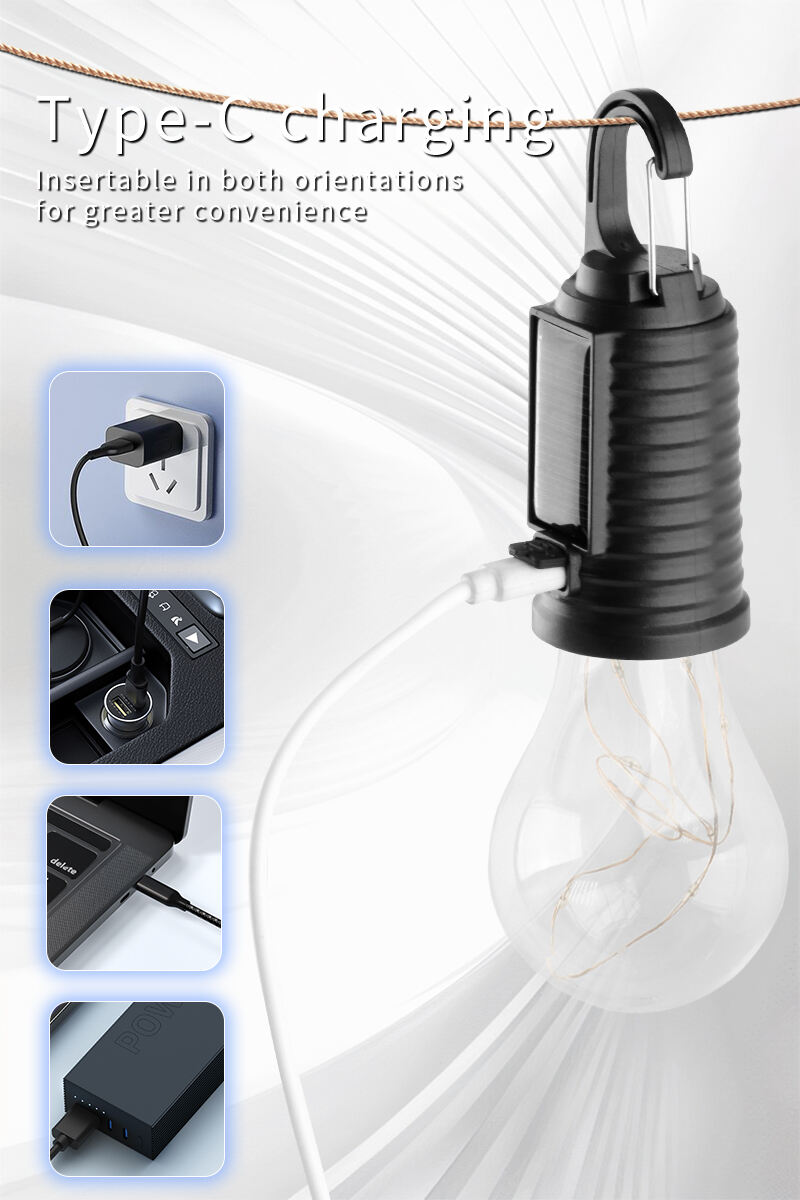 Tämä aurinkoenergialla ladattava retkeilyvalo on suunniteltu ulko- ja leirintäkäyttöön sekä koristevalaistukseen, ja siinä on kompakti muovirunko ja käytännöllinen koukku, jolla sen voi helposti ripustaa telttoihin, oksille, leirintärakentelmiin tai muihin ulkorakenteisiin. RGB-led-valonlähteen ansiosta valossa on useita valomuotoja, kuten vakiovalo, vilkkuminen ja salama, tarjoten joustavia valovaikutelmia valaistukseen, tunnelmaan ja merkkivaloihin. Sisäänrakennettu uudelleenladattava akku tukee sekä aurinkolatausta että USB-tyyppi C -latausta, tarjoten luotettavan virransyötön ulkoiluun ja kätevän varalatausmahdollisuuden, kun auringonvalo on rajallista. Kevyen suunnittelun ja yksinkertaisen käytön ansiosta tämä retkeilyvalo on helppo kuljettaa ja asentaa, mikä tekee siitä sopivan leirintään, vaellukseen, ulkotilaisuuksiin, yöaktiviteetteihin, hätävarusteisiin sekä koristeelliseen ulkovalaistukseen.