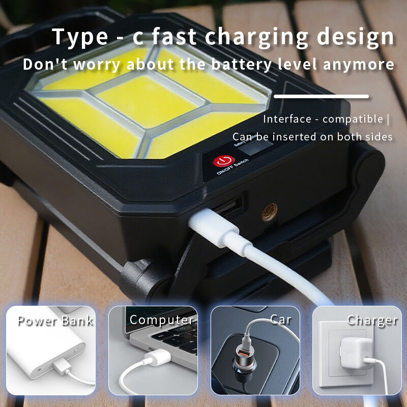 新登場 ソーラー充電式高輝度アウトドア折りたたみライト、屋外防水Type-C充電対応多機能作業灯