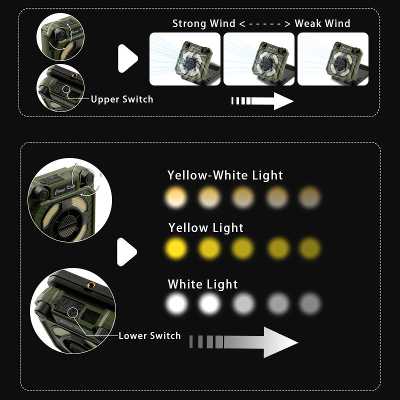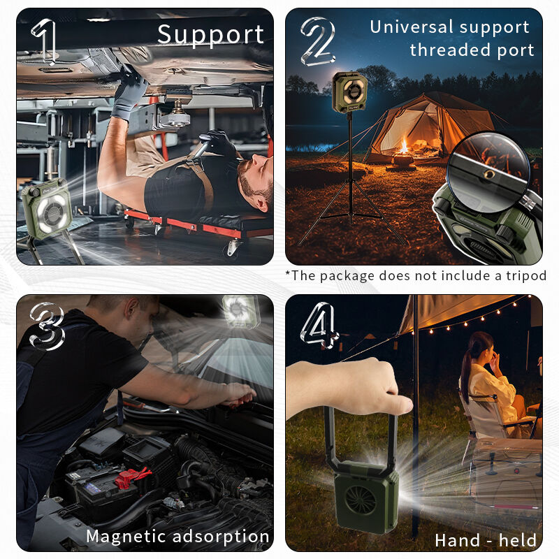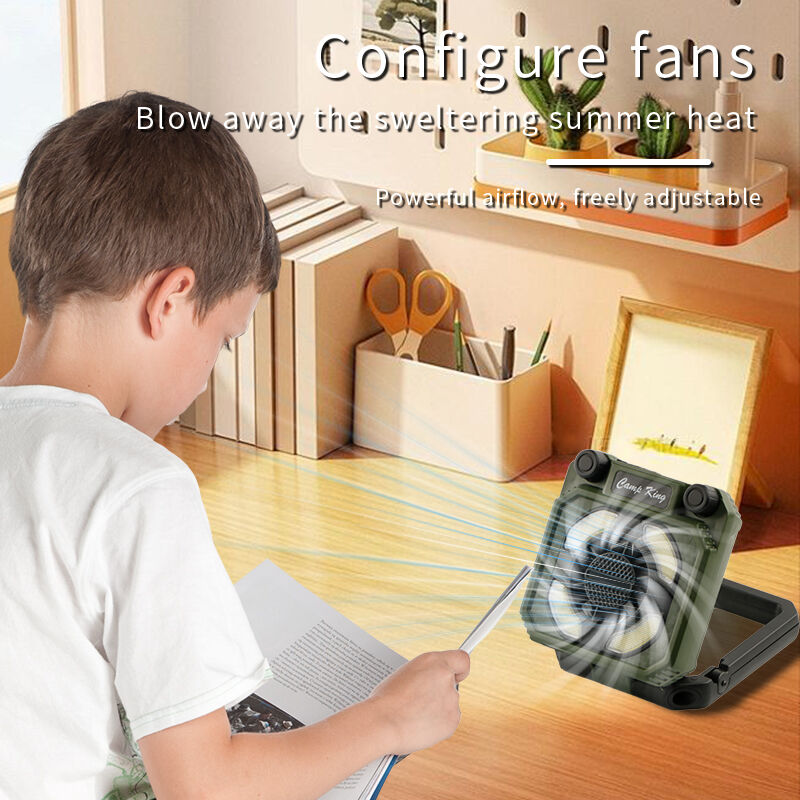 長持ちバッテリー付きアウトドアキャンプライト、キャンプ場のテントライト、充電式ポータブル折りたたみ作業灯、多機能ファン付きキャンプライト