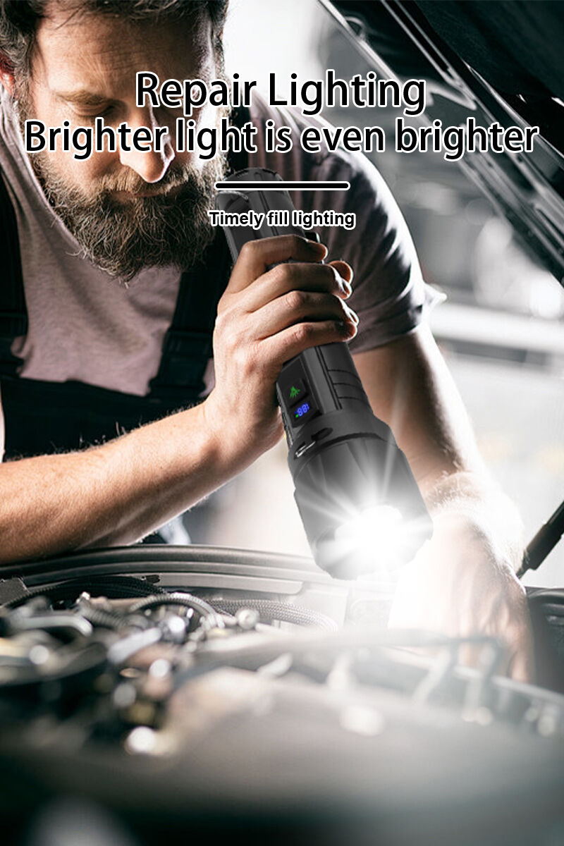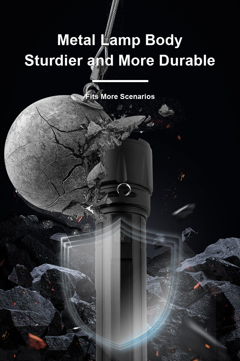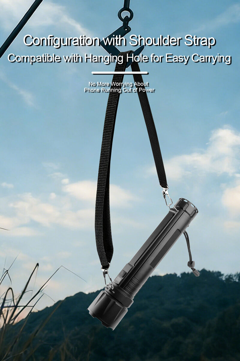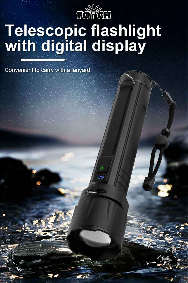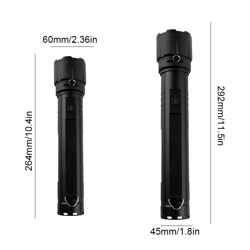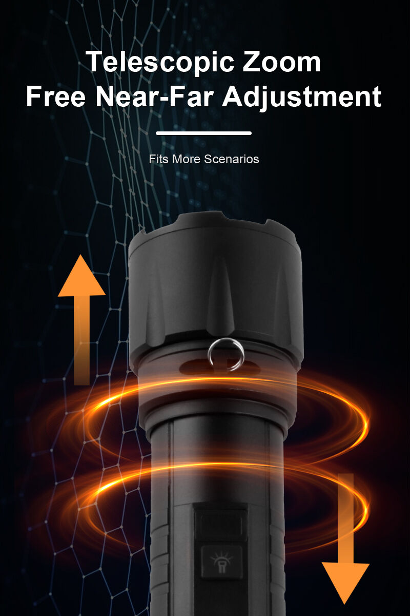 이 고파워 충전식 손전등은 전문가용, 야외 및 비상 조명 용도에 적합하도록 설계되었으며, 견고한 알루미늄 합금 본체를 채택하여 장기간 사용 시 우수한 내구성과 열분산 성능을 제공합니다. 레이저 광원을 장착하여 높은 밝기, 낮은 밝기, 스트로브 조명 모드를 제공하여 다양한 조명 및 신호 전달 요구 사항을 충족합니다. 손전등은 줌 기능을 지원하여 사용자가 빔의 초점을 스팟에서 플러드까지 조절할 수 있어 다양한 환경에서 유연하게 사용할 수 있습니다. 18650 배터리 6개를 사용하도록 설계되어 강력한 출력과 긴 작동 시간을 제공하며, 디지털 전력량 표시 기능을 통해 사용자는 작동 중 전력 상태를 명확하게 확인할 수 있습니다. 내장된 파워뱅크 기능을 갖추고 있어 필요 시 다른 전자기기를 충전하는 데도 사용 가능합니다. USB Type-C 충전을 지원하는 이 손전등은 야외 활동, 보안 순찰, 점검, 구조 작업, 캠핑 등 전문적이거나 중강도 작업용 애플리케이션에 적합합니다.