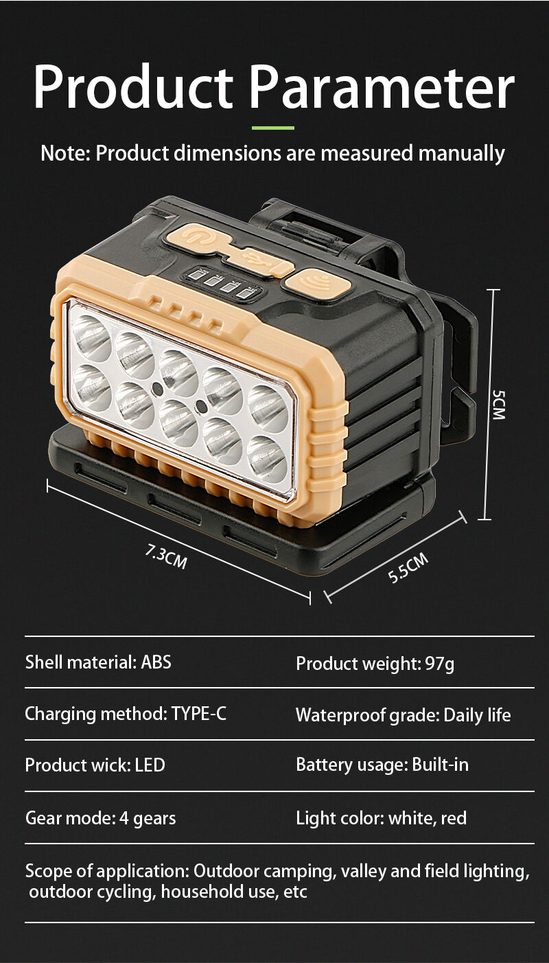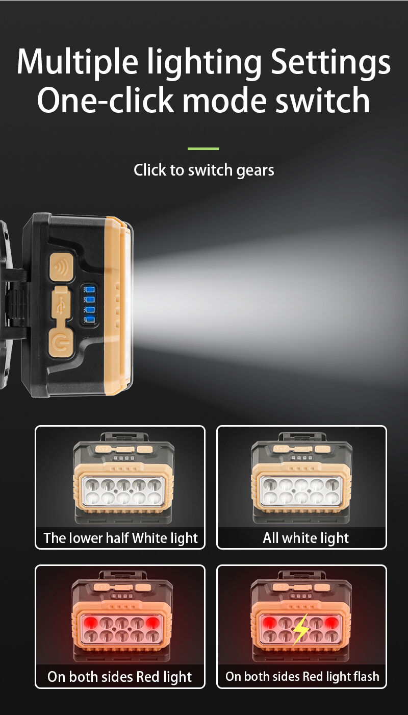 태양광 및 USB-C 이중 충전 방식 헤드램프(전원 표시 기능 포함) | 야외 및 비상 상황용 백색 및 적색 LED 조명 모드