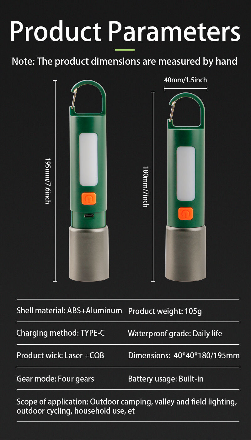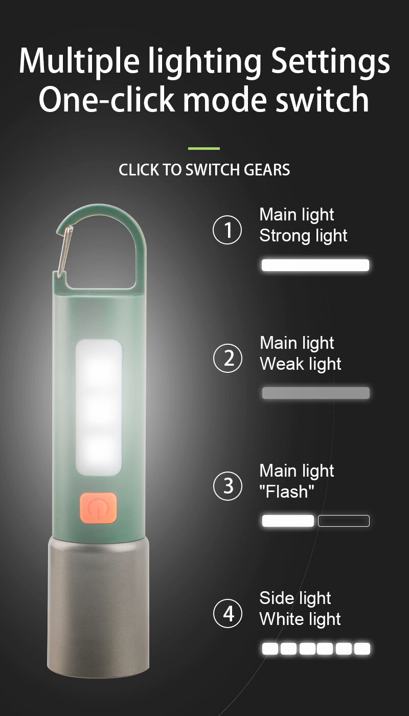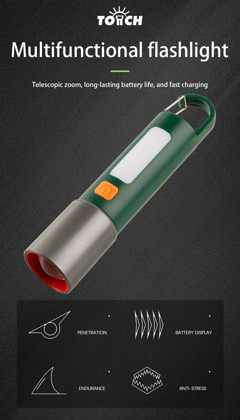 이 소형 충전식 LED 손전등은 줌 기능, 태양광 충전, 클립 장착 편의성을 결합하여 야외 활동 및 일상 휴대용으로 이상적입니다. 강력한 레이저 빔과 흰색 SMD LED를 갖춘 이중 광원을 채택해 다양한 상황에 맞는 유연한 조명 옵션을 제공합니다. 줌 기능을 통해 집중 조명(스포트라이트)과 광역 조명을 부드럽게 전환할 수 있습니다. 고출력, 저출력, 스트로브, SMD 조명 등 여러 가지 조명 모드를 지원하여 캠핑, 하이킹, 작업, 비상 상황 등 다양한 용도로 활용할 수 있습니다. 내장 배터리와 태양광 및 USB-C 방식의 이중 충전 옵션을 갖추고 있어 야외 환경에서도 신뢰성 있는 작동을 보장합니다. 가볍고 내구성이 뛰어난 플라스틱 하우징과 견고한 클립 디자인으로 가방, 벨트, 의류 등에 손쉽게 고정해 양손을 자유롭게 사용할 수 있습니다.
