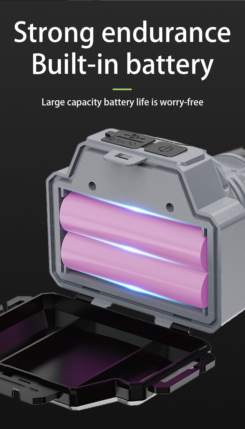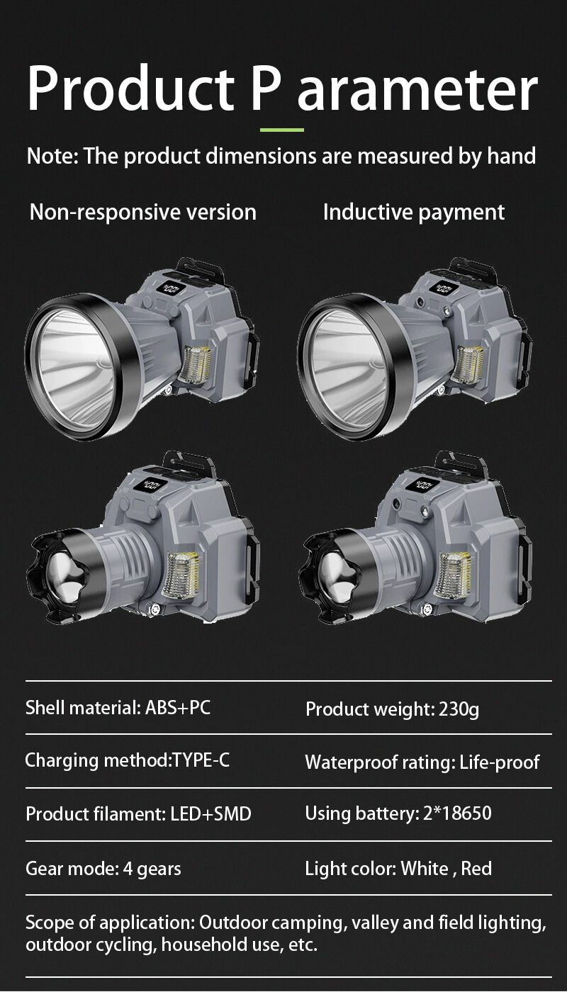 Indicador digital de potência | Função de banco de energia | Sensor de movimento manual | Lanterna de mão removível | Carregamento rápido Tipo-C | 2 × 18650