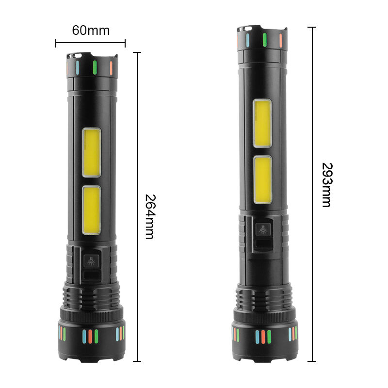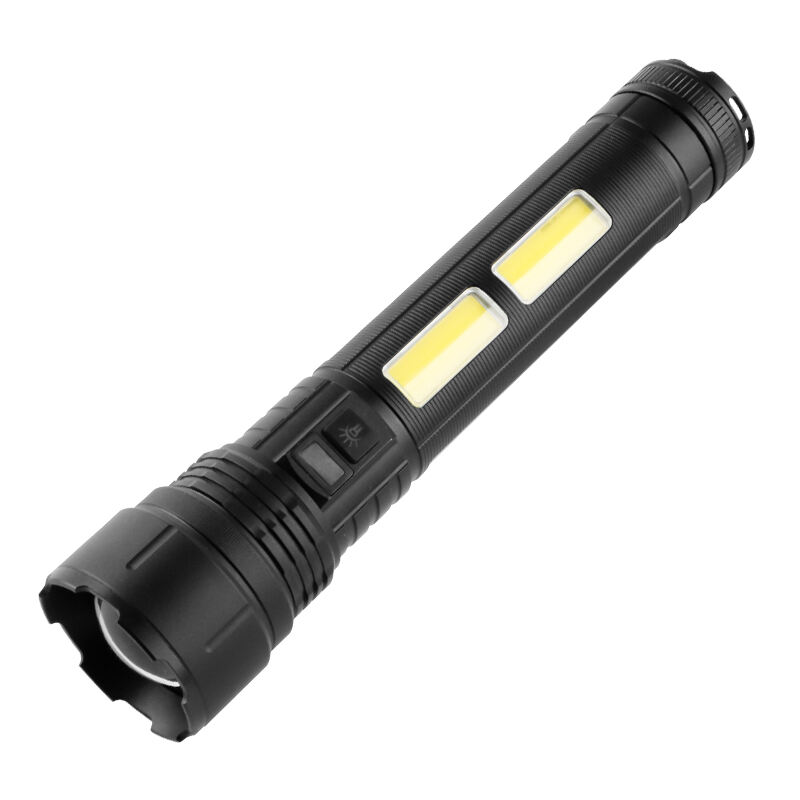 Projetada para versatilidade e confiabilidade, esta lanterna de alto fluxo luminoso possui um potente feixe principal e uma luz lateral COB de grande área. O controle de um toque e duplo toque permite a troca rápida de modos, oferecendo modos forte, fraco e estroboscópico — ideal para uso ao ar livre, emergências, trabalho e uso diário.