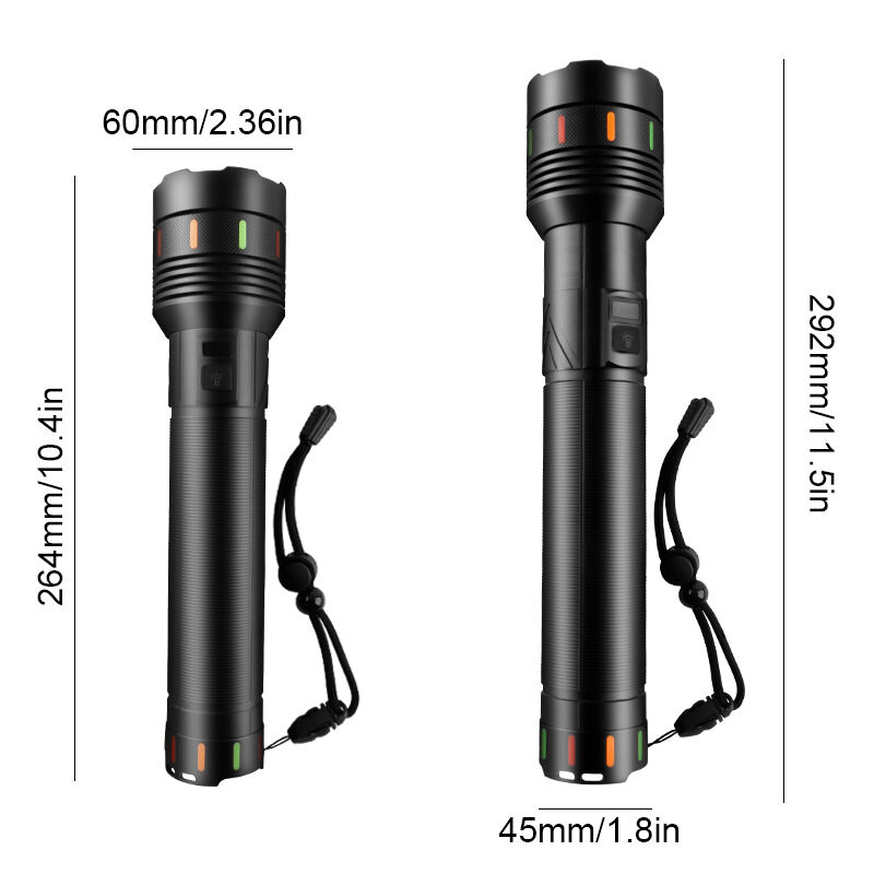 Equipado com uma tela digital elétrica para monitorar em tempo real a vida da bateria, esta lanterna oferece três modos de iluminação, ajuste suave de zoom de perto para longe e tempo de funcionamento prolongado. Ideal para camping, trabalho noturno, patrulhamento de segurança e situações de emergência onde o brilho e o controle são mais importantes.
