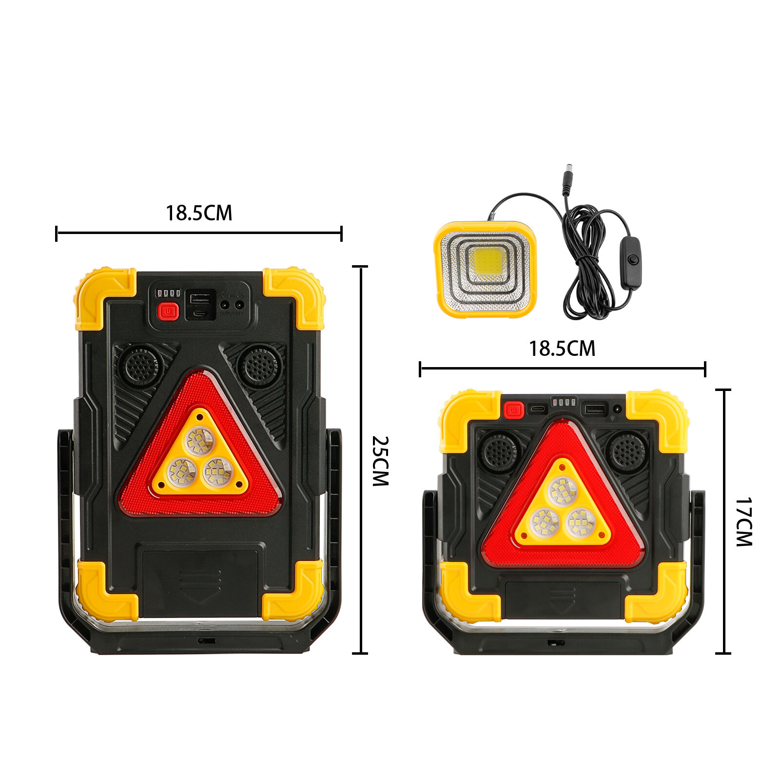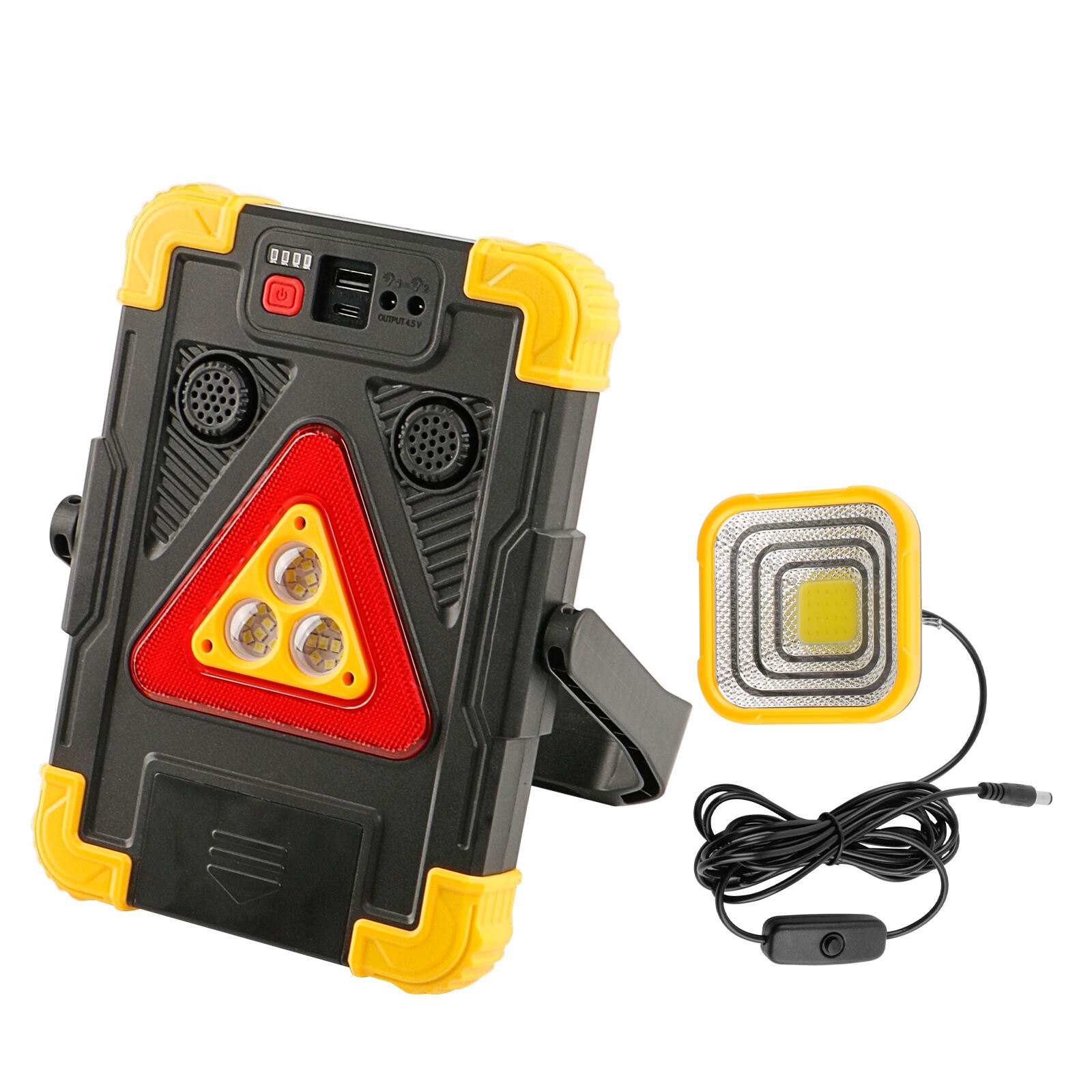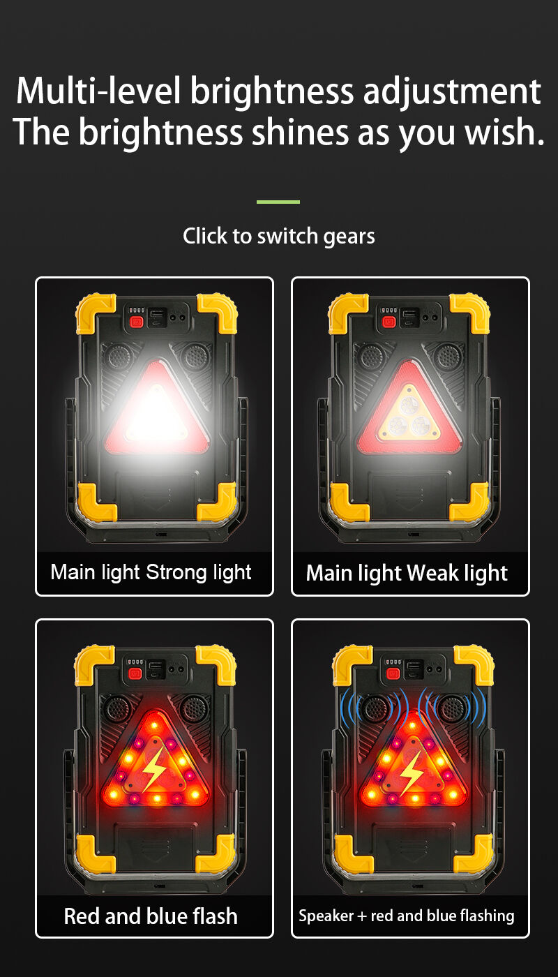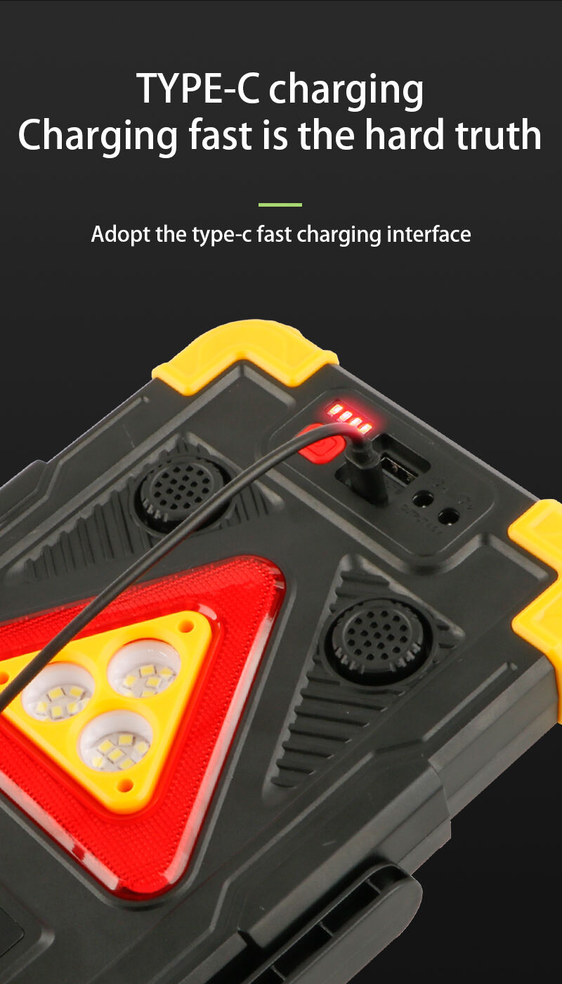 Этот многофункциональный рабочий фонарь предназначен для освещения на строительных площадках, в условиях открытой местности и в чрезвычайных ситуациях. Он выполнен в прочном корпусе из АБС-пластика и поликарбоната с высококонтрастной комбинацией чёрного и оранжевого или синего цветов, что делает его пригодным для работы в тяжёлых условиях. Фонарь оснащён 27 белыми SMD-светодиодами, а также красными и синими SMD-светодиодами, обеспечивая несколько режимов освещения: белый свет с высокой и низкой яркостью, красный и синий стробоскоп, а также функцию сигнальной тревоги для экстренного оповещения. Дополнительный COB-фонарь обеспечивает простое включение и выключение для вспомогательной подсветки при необходимости. Устойчивая подставка и практичный крючок позволяют устанавливать фонарь на ровной поверхности или подвешивать для удобного использования без помощи рук. Устройство поддерживает зарядку с помощью солнечной панели и через USB Type-C, оснащено встроенной перезаряжаемой батареей 18650 и имеет цифровой индикатор мощности, отображающий уровень заряда. С функцией внешнего аккумулятора для зарядки внешних устройств и встроенной сигнализацией для повышения безопасности, этот рабочий фонарь подходит для строительных площадок, технического обслуживания, кемпинга, аварий на дорогах, активного отдыха и подготовки на случай чрезвычайных ситуаций.