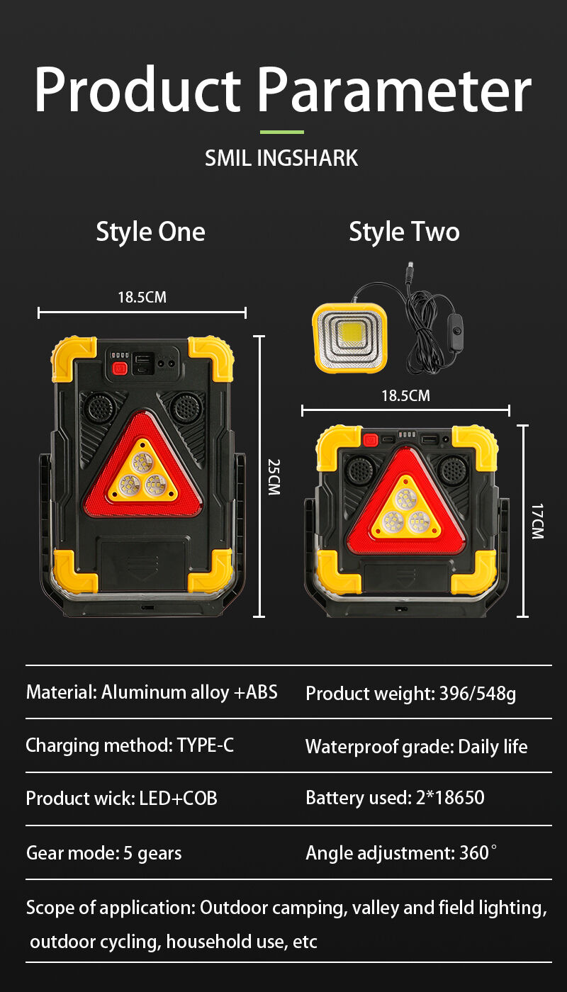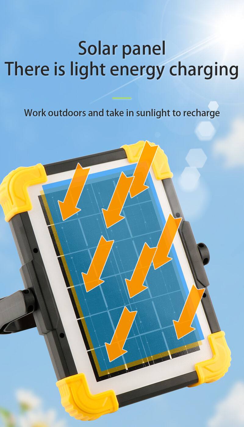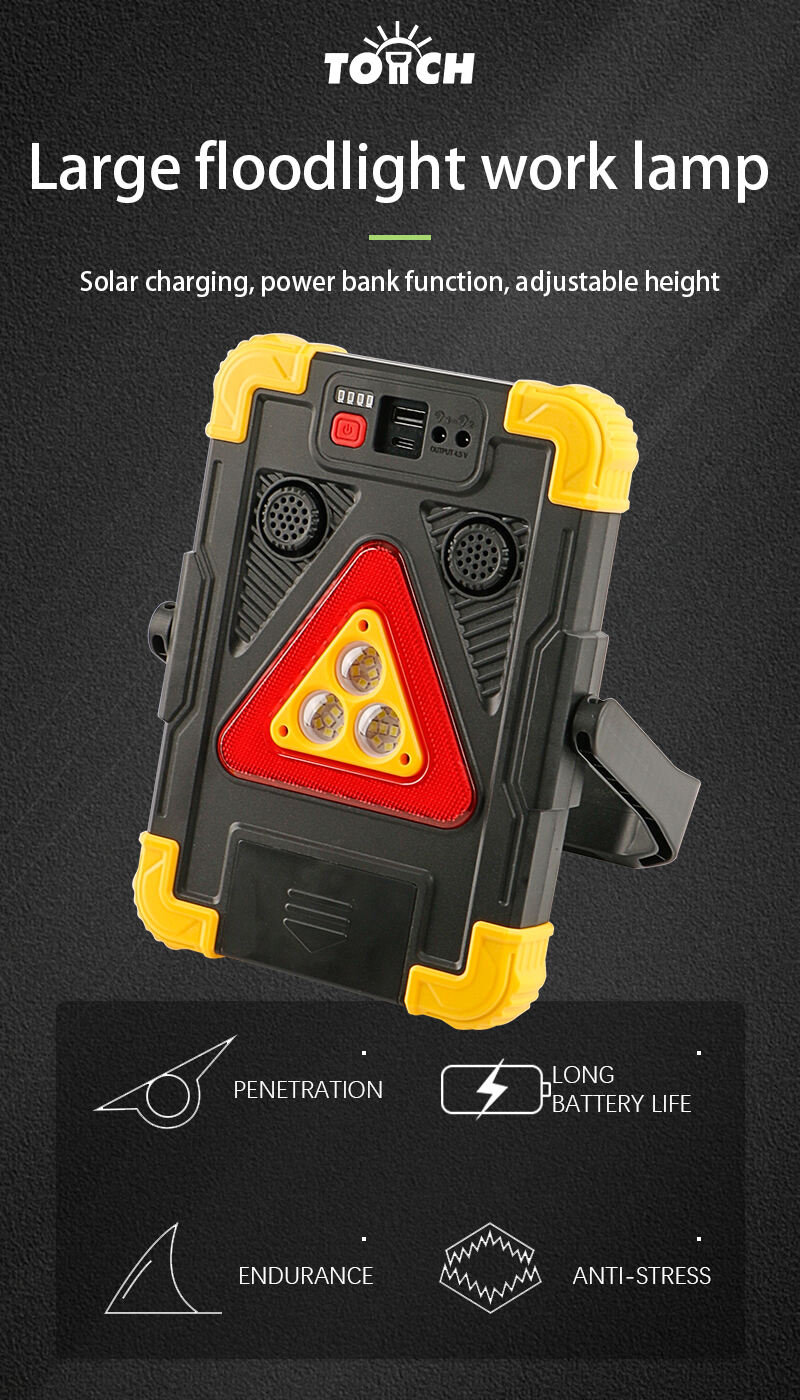 Многофункциональная светодиодная рабочая лампа с крючком и подставкой | Индикация питания, зарядка от солнечной батареи и аварийная сигнализация | Для использования на улице и на рабочем месте