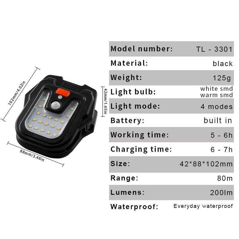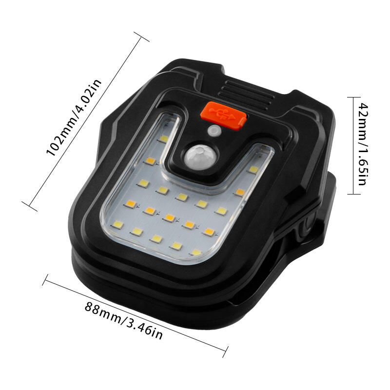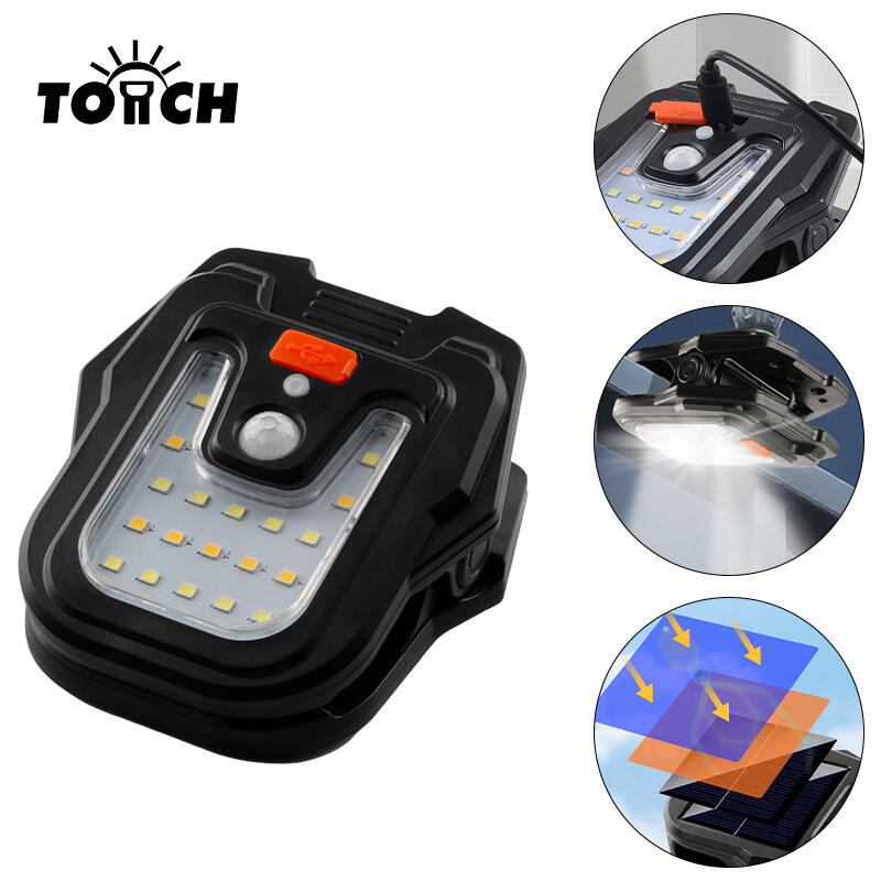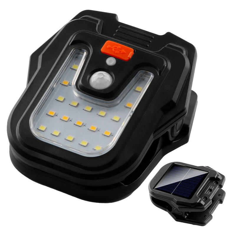This solar rechargeable LED light is designed for outdoor, emergency and portable lighting applications, combining a solar charging function with a built-in rechargeable battery for energy-saving and convenient use. Featuring a practical clip design, it can be easily attached to fences, backpacks, tents or other suitable positions, while the integrated PIR motion sensor allows automatic lighting control for enhanced efficiency and safety. The light is equipped with 12 white SMD LEDs and 7 warm SMD LEDs, offering multiple lighting modes including sensor on/off in high mode, sensor on/off with low to high brightness, no-sensor low mode for white light, and no-sensor mode for warm light, providing flexible options for different environments and user preferences. It supports both solar charging and USB Type-C charging, ensuring reliable power supply even in low-sunlight conditions. With its compact plastic housing and versatile functionality, this light is suitable for outdoor areas, camping, corridors, entrances, emergency lighting and portable lighting solutions.